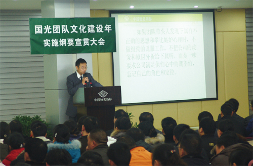 隨著企業(yè)的進一步壯大,營銷模式逐步轉型,技術服務的加強,國光品牌有了進一步的提升。同時注意到國內一些企業(yè)在短期行為的驅使下,不重視產(chǎn)品質量、不講誠信,導致企業(yè)壽命短。而世界上重視產(chǎn)品質量和品牌的知名企業(yè)大都有百年以上的歷史。國光基于這些感悟,在總結國光發(fā)展的成敗得失和類比剖析同行業(yè)基礎上,形成了『做百年、做品牌』的國光企業(yè)理念,并用這一理念去指導、規(guī)范『做質量、做誠信、做特色、做服務、做祥和、盡社會責任、重企業(yè)文化、重人才培養(yǎng)』的子理念行為,從而達到用品牌取勝,百年不衰。