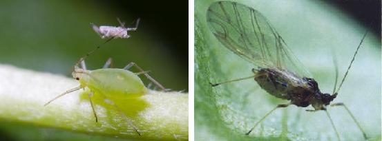 危害桃樹(shù)的蚜蟲(chóng)主要包括桃赤蚜、桃粉蚜和桃瘤蚜,這幾種蚜蟲(chóng)1年發(fā)生10余代,以卵在桃、李、杏、櫻桃等越冬寄主的枝梢、芽縫、小枝杈縫隙處越冬。翌年果樹(shù)發(fā)芽時(shí),越冬蟲(chóng)卵開(kāi)始孵化,孵化出的蚜蟲(chóng)群集于嫩芽上和幼嫩葉片的葉背面為害和繁殖,特別4-5月份蚜蟲(chóng)繁殖最快,俗話“一天內(nèi)爺爺見(jiàn)孫子”說(shuō)的就是此時(shí)蚜蟲(chóng)的繁殖速度。6月中旬,產(chǎn)生有翅蚜遷飛至馬鈴薯、煙草、棉花十字花科等寄主上繁殖危害,到10月中旬,有翅蚜飛回果樹(shù)產(chǎn)卵。