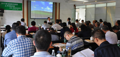 2015年9月25日,由成都市森防總站主辦、國光協(xié)辦的2015年成都市森防工作培訓會在國光召開。成都市各區(qū)(市)縣森防分管領導、森防站長、工作人員及國光股份相關技術代表共70余人參會。
