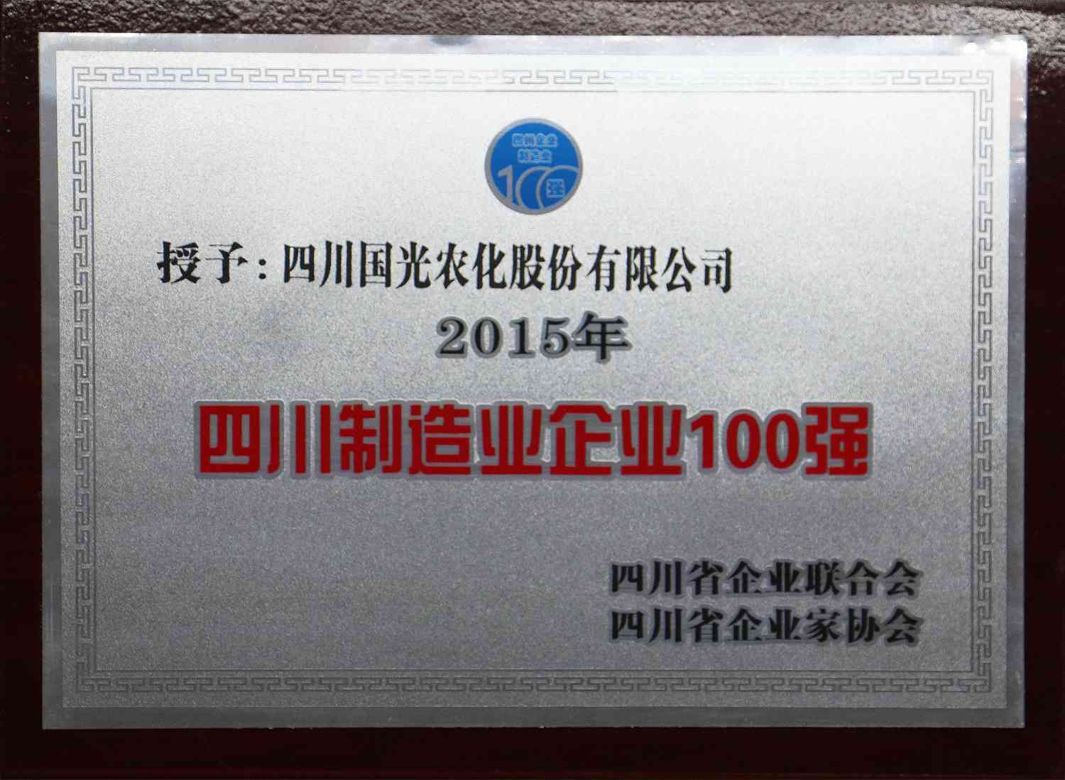 2016年1月15日,由四川省企業(yè)聯(lián)合會/企業(yè)家協(xié)會召開的第八屆三次理事會全體大會暨2016年企業(yè)家年會上國光公司及子公司分別榮獲2015年《四川制造業(yè)企業(yè)100強》、《四川服務(wù)業(yè)企業(yè)100強》稱號。