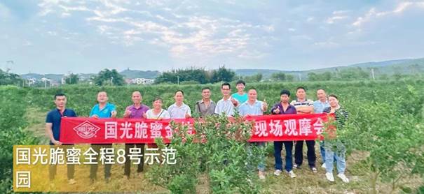 6月14日,國光農(nóng)化在廣西柳州召開“國光脆蜜金桔全程調(diào)控方案8號園-階段性驗收觀摩會”,10余名種植大戶參會,高度認(rèn)可紛紛認(rèn)購使用我司方案。國光在當(dāng)?shù)匾呀?/span>200余個脆蜜金桔全程調(diào)控方案示范園!