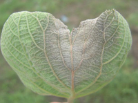該病害不常發(fā)生。20~26℃的持續(xù)偏低溫,連陰雨天氣發(fā)病,汁液傳播。主要是通過(guò)刺吸式口器的蟲(chóng)子進(jìn)行傳播,如葉蟬、蚧殼蟲(chóng)。