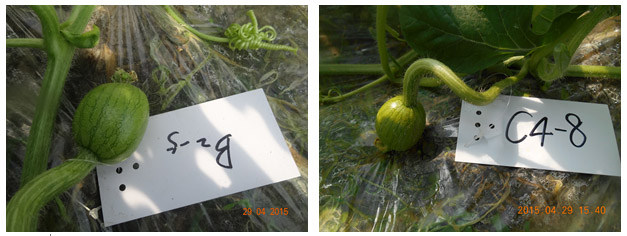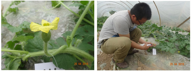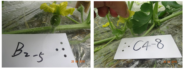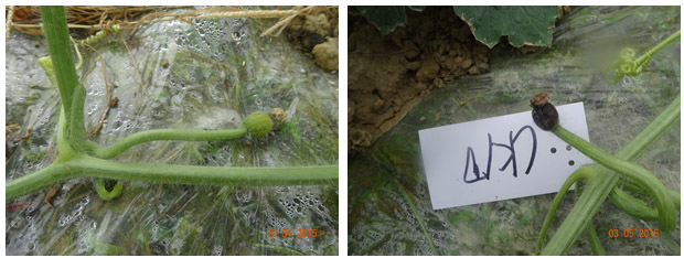 7、使用調節(jié)劑。在雌花開放當天或前一天,使用0.1%氯吡脲噴瓜胎,噴施時要均勻,噴正反兩面。一般在溫度低于18度使用0.1%氯吡脲10ml兌水1.5kg左右噴瓜胎,溫度在18-24度使用0.1%氯吡脲10ml兌水1.5-2kg,溫度25-30度使用0.1%氯吡脲10ml兌水1.5-3kg噴瓜胎可促進座瓜,提高座瓜率。