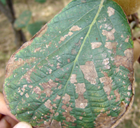 在傳染途徑上,一般是從枝干傳染到新梢、葉片,再?gòu)娜~片傳染到枝干,干枯落葉及土壤不具傳染性。發(fā)病期風(fēng)有利于傳染和蔓延。
