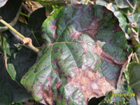 (2)發(fā)病防治:發(fā)病前(花前)或發(fā)病初期葉面噴施殺菌劑防治。