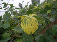 獼猴桃病毒病有獼猴桃花葉病。。表現(xiàn)為葉部有鮮黃色不規(guī)則線(xiàn)狀或片狀斑,病健部交界明顯,葉脈和脈間組織均可以發(fā)病,嚴(yán)重影響葉片的光合功能。