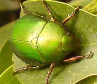 屬于鞘翅目(特點(diǎn)前翅堅(jiān)硬,后翅膜質(zhì)),是咀嚼式口器,所以說(shuō)被害植物有缺口、孔洞燈機(jī)械損傷,嚴(yán)重時(shí)可以吃光葉片,咬斷根莖。常在傍晚至晚上10時(shí)咬食最盛。常見(jiàn)的有銅綠金龜子、朝鮮黑金龜子、茶色金龜子、暗黑金龜子等。多在夜間活動(dòng),有趨光性。