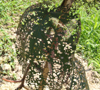 屬于同翅目,體外有蠟質(zhì)介殼。卵通常埋在蠟絲塊中、雌體下或雌蟲(chóng)分泌的介殼下。 介殼蟲(chóng)繁殖能力強(qiáng),一年發(fā)生多代。卵孵化為若蟲(chóng),經(jīng)過(guò)短時(shí)間爬行,營(yíng)固定生活,即形成介殼。介殼蟲(chóng)抗藥能力強(qiáng),一般藥劑難以進(jìn)入體內(nèi),防治比較困難。