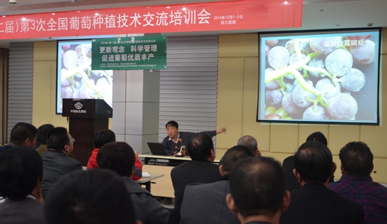 2014年12月1日—5日,由中國農(nóng)學會葡萄分會、中國果品流通協(xié)會葡萄分會主辦,中國農(nóng)藥發(fā)展與應用協(xié)會植物生長調(diào)節(jié)劑專業(yè)委員會、國光承辦的2014年(第二屆)第三次全國葡萄種植技術(shù)交流培訓會在國光召開,來自安徽、湖北、四川、山西、江蘇等地的200余名葡萄種植戶參加了會議。