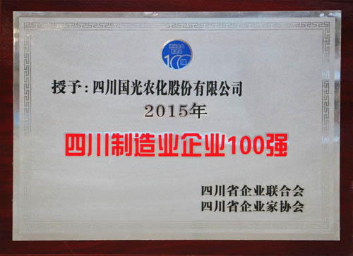 2015年11月26日下午,四川省企業(yè)聯(lián)合會(huì)、四川省企業(yè)家協(xié)會(huì)發(fā)布了《2015四川企業(yè)發(fā)展報(bào)告》,我公司再次榮獲四川制造業(yè)百強(qiáng)企業(yè)。四川國光農(nóng)資有限公司榮獲四川服務(wù)業(yè)百強(qiáng)企業(yè)。