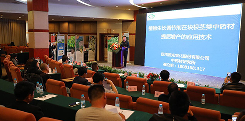 在專家座談中,四川省中藥行業(yè)協(xié)會(huì)會(huì)長石才金;四川大學(xué)華西藥學(xué)院教授張浩;四川省中醫(yī)藥科學(xué)院教授舒光明;四川農(nóng)業(yè)大學(xué)教授田孟良;四川省農(nóng)科院經(jīng)作所研究員張超;四川省農(nóng)業(yè)廳高級農(nóng)藝師李濤等領(lǐng)導(dǎo)、專家作了專題演講,國光作物調(diào)控技術(shù)研究院中藥材所負(fù)責(zé)人就植物生長調(diào)節(jié)劑在塊根莖類中藥材提質(zhì)增產(chǎn)的應(yīng)用技術(shù)進(jìn)行了分享。