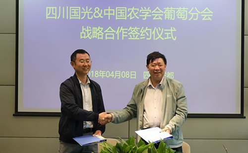 2018年4月8日,中國農學會葡萄分會會長劉俊、秘書長張鶴蒞臨國光,與國光總經(jīng)理顏亞奇就葡萄產(chǎn)業(yè)現(xiàn)狀與種植技術變革進行了交流,雙方在友好協(xié)商、互相促進的前提下簽署了戰(zhàn)略合作協(xié)議,國光有幸成為了中國農學會葡萄分會第一家戰(zhàn)略合作單位。