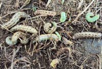 1.年發(fā)生代數(shù) 一年4-5代,在山東和浙江經(jīng)調(diào)查都是如此。以蛹在土下3-5厘米處越冬。(以危害白三葉為例:2代開始(7月上旬)在三葉草草坪上開始為害,出現(xiàn)一個個蟲團;3、4代(8-9月)為害加重,為主害代,并出現(xiàn)世代重疊,能成片成片吃光草坪,使綠化景觀效果遭受到嚴重的破壞。)