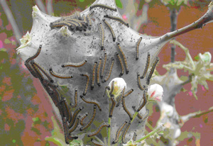 二是人工捕殺,幼蟲白天有群聚網(wǎng)內(nèi)的特性,可以人工摘除網(wǎng)幕,集中燒毀,在分散前及時捕殺,分散后可采用振樹捕殺,從而減少蟲口密度;